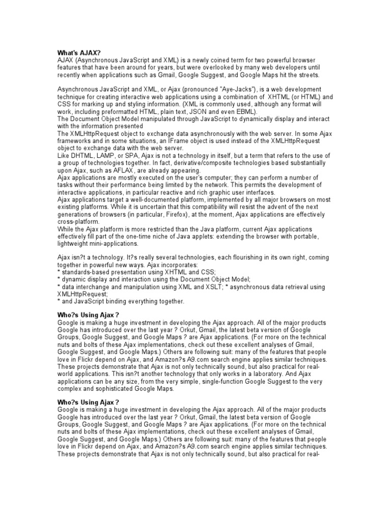Ajax isn?t a technology. It?s really several technologies, each flourishing in its own right, coming