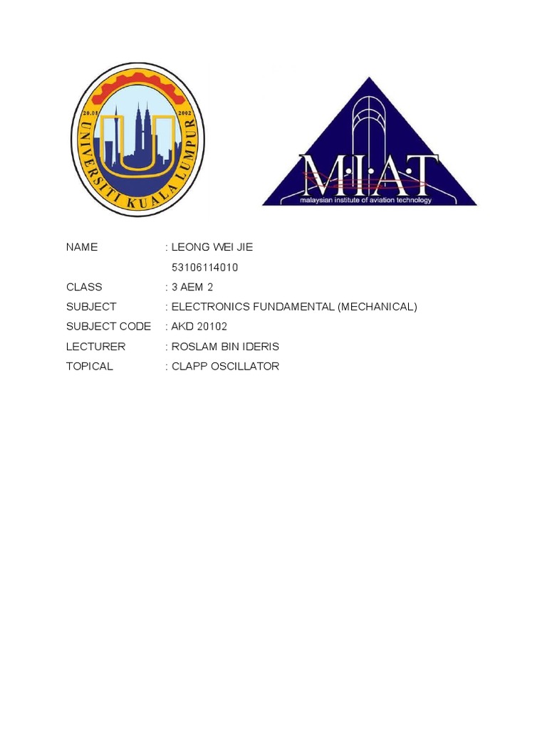SUBJECT : ELECTRONICS FUNDAMENTAL (MECHANICAL)