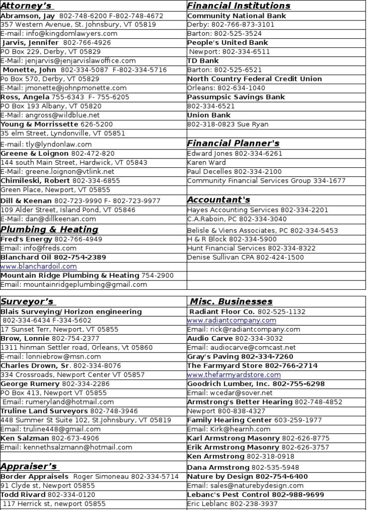 Blanchard Oil 802-754-2389 Denise Sullivan CPA 802-424-1500