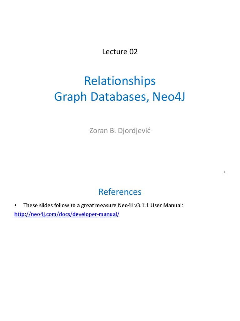 These slides follow to a great measure Neo4J v3.1.1 User Manual: