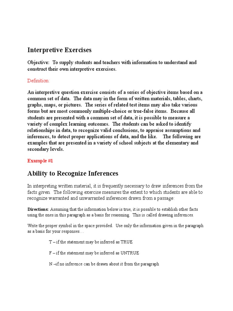 The interpretive exercise has many advantages. First, the introductory material makes it possible to measure the ability to interpret writ