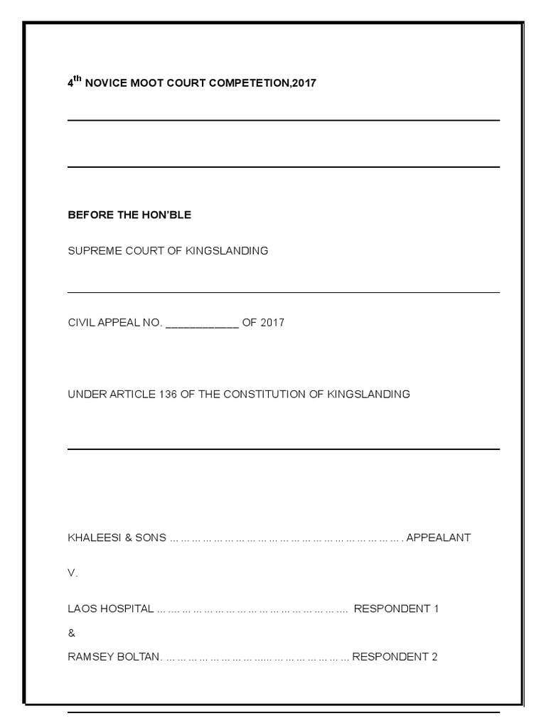 UNDER ARTICLE 136 OF THE CONSTITUTION OF KINGSLANDING