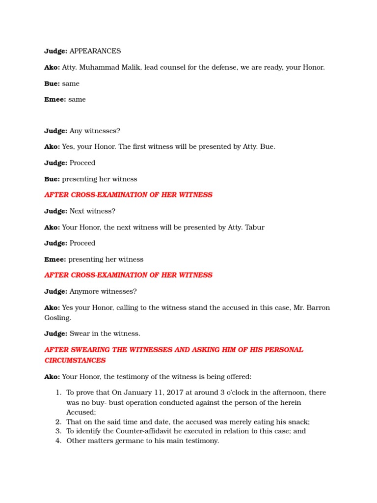 Ako: Yes your Honor, calling to the witness stand the accused in this case, Mr. Barron