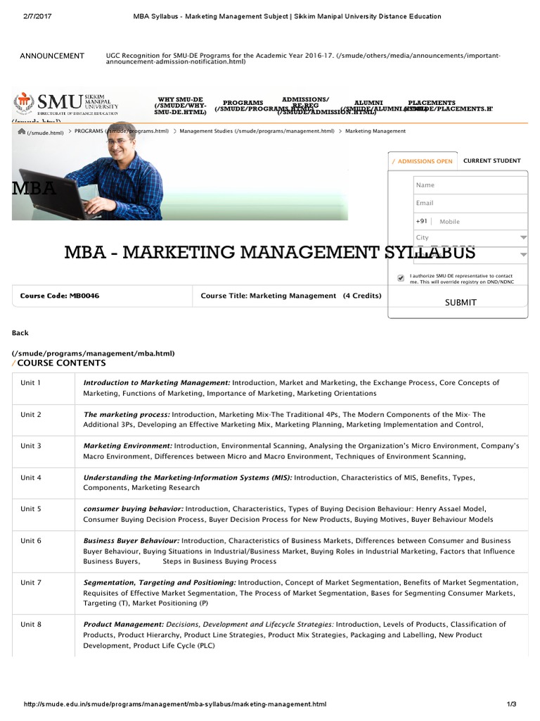 2/7/2017 MBASyllabusMarketingManagementSubject|SikkimManipalUniversityDistanceEducation