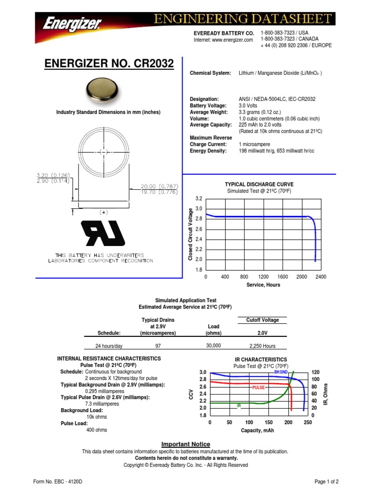 Designation: ANSI / NEDA-5004LC, IEC-CR2032