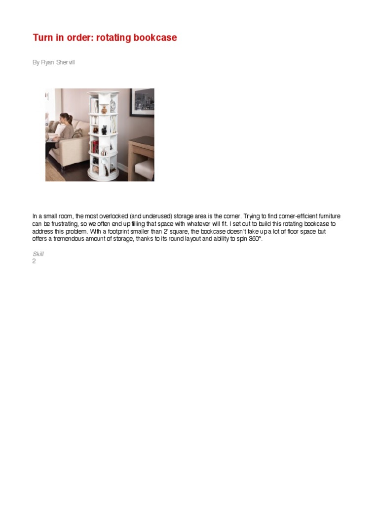 can be frustrating, so we often end up filling that space with whatever will fit. I set out to build this rotating bookcase to