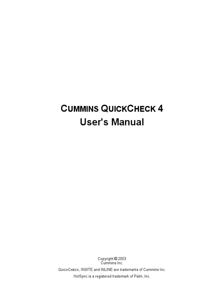 QUICKCHECK, INSITE and INLINE are trademarks of Cummins Inc.