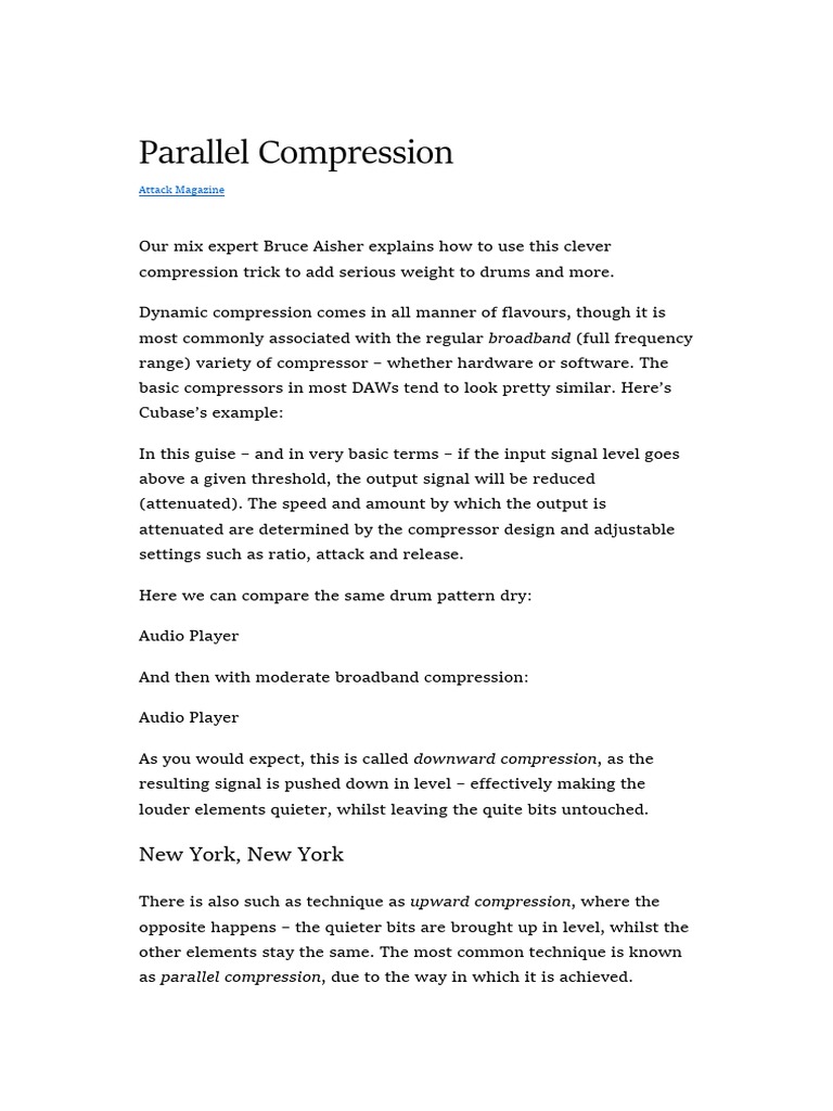 compressor to peak mode (as opposed to RMS). Gain make-up is a