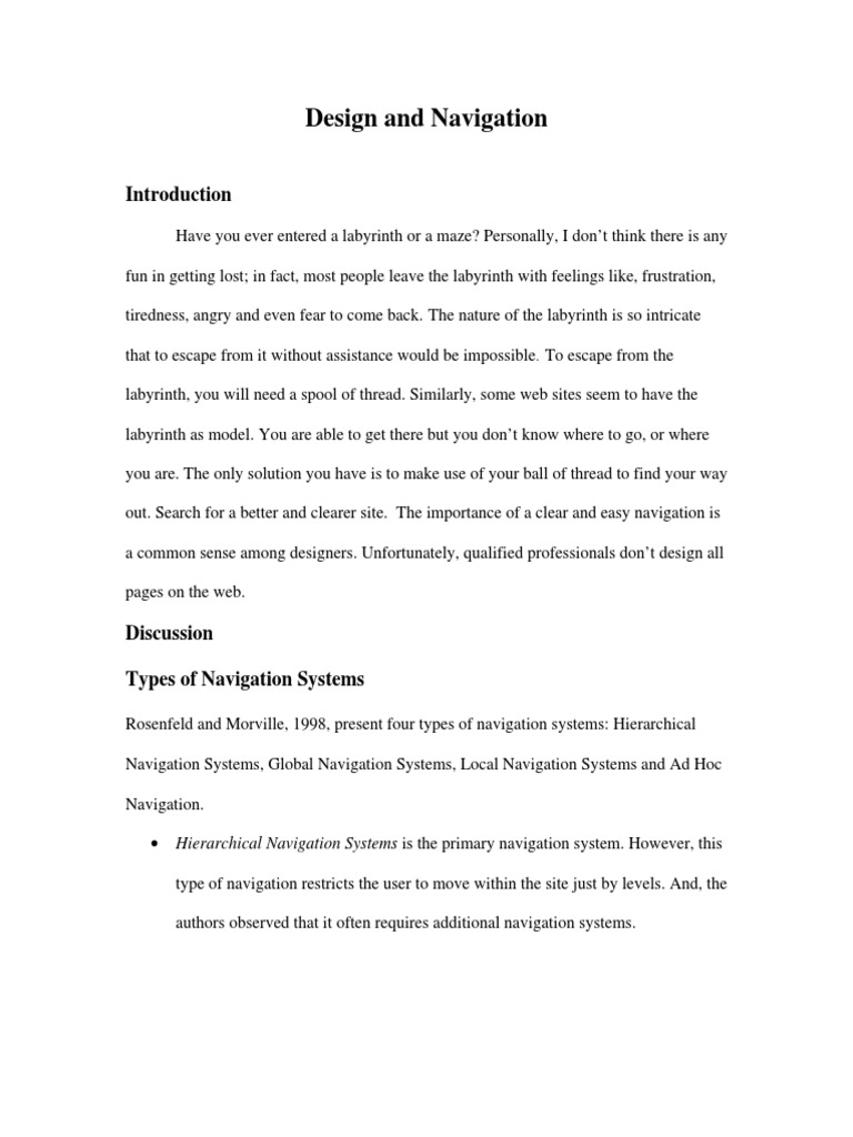 Rosenfeld and Morville, 1998, present four types of navigation systems: Hierarchical