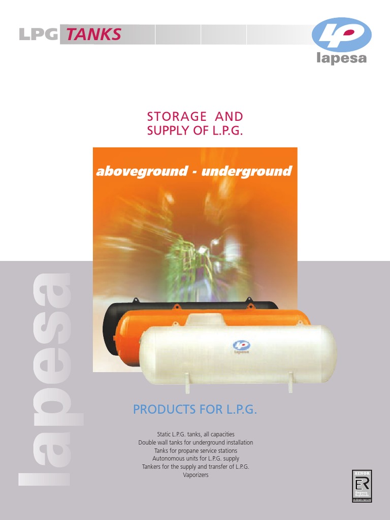 TANKS Manufactured according to LPG regulations for static tanks and in compliance with European Directive 97/23/CE.