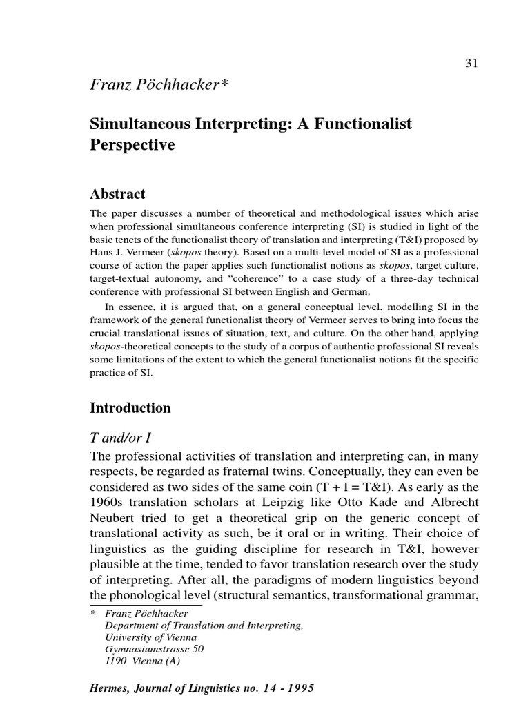 Conference Interpreters. Unlike Vermeer (1989), who uses the notion of