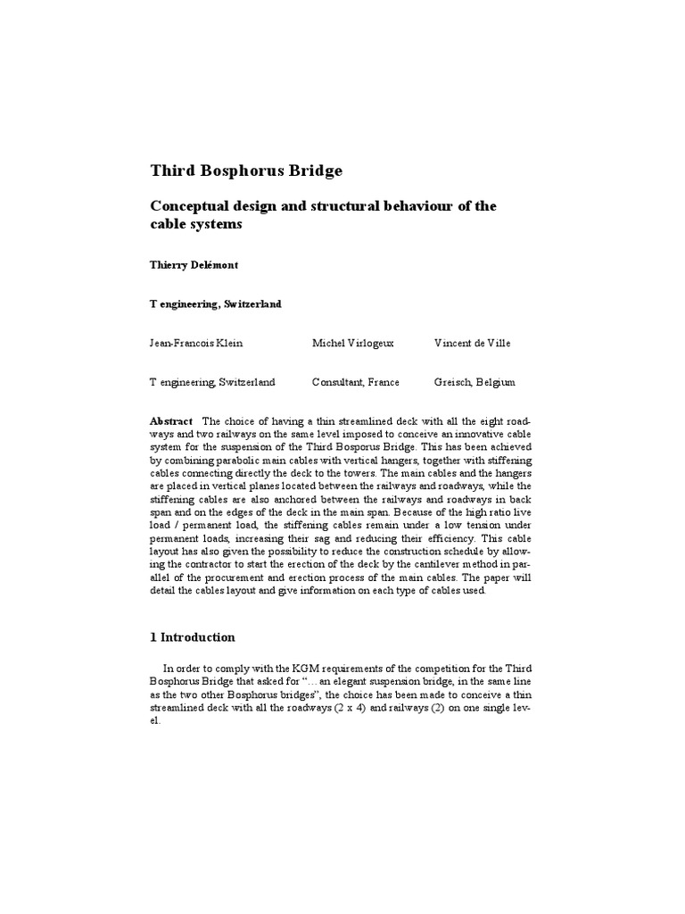 system for the suspension of the Third Bosporus Bridge. This has been achieved