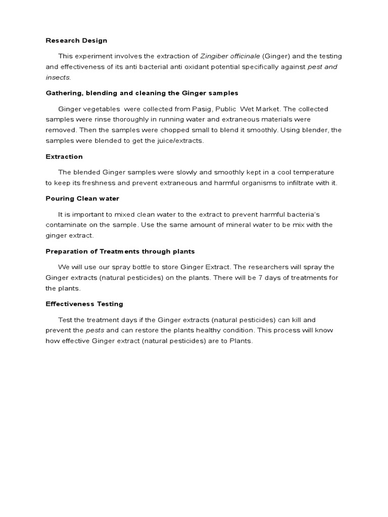 Ginger vegetables were collected from Pasig, Public Wet Market. The collected