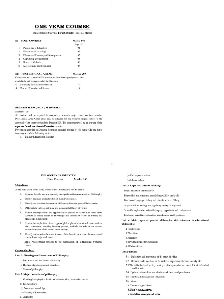 OConnor, D.J. (1957) An introduction to the philosophy of education. London: Routledge COURSE UTLINE: