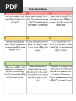 1. A solid ball has a mass of 50 grams and a volume of 20 cm3. What is the density?