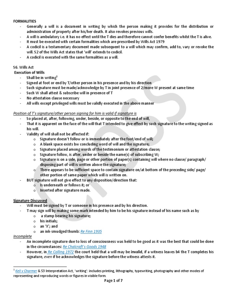 - It must be executed with certain formalities which are prescribed by Wills Act 1979