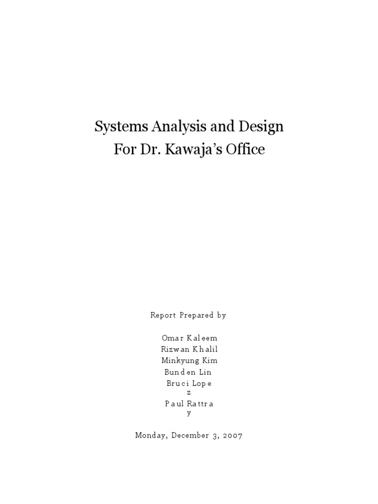 Title will be: Systems Analysis and Design for Dr. Kawajas Office