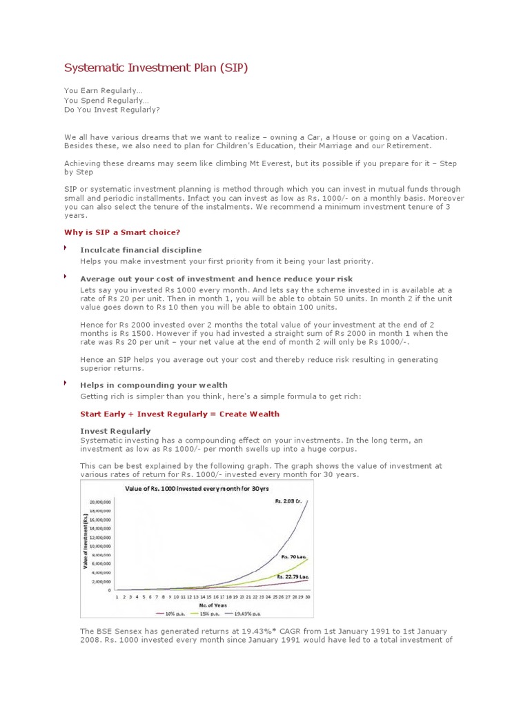 small and periodic installments. Infact you can invest as low as Rs. 1000/- on a monthly basis. Moreover
