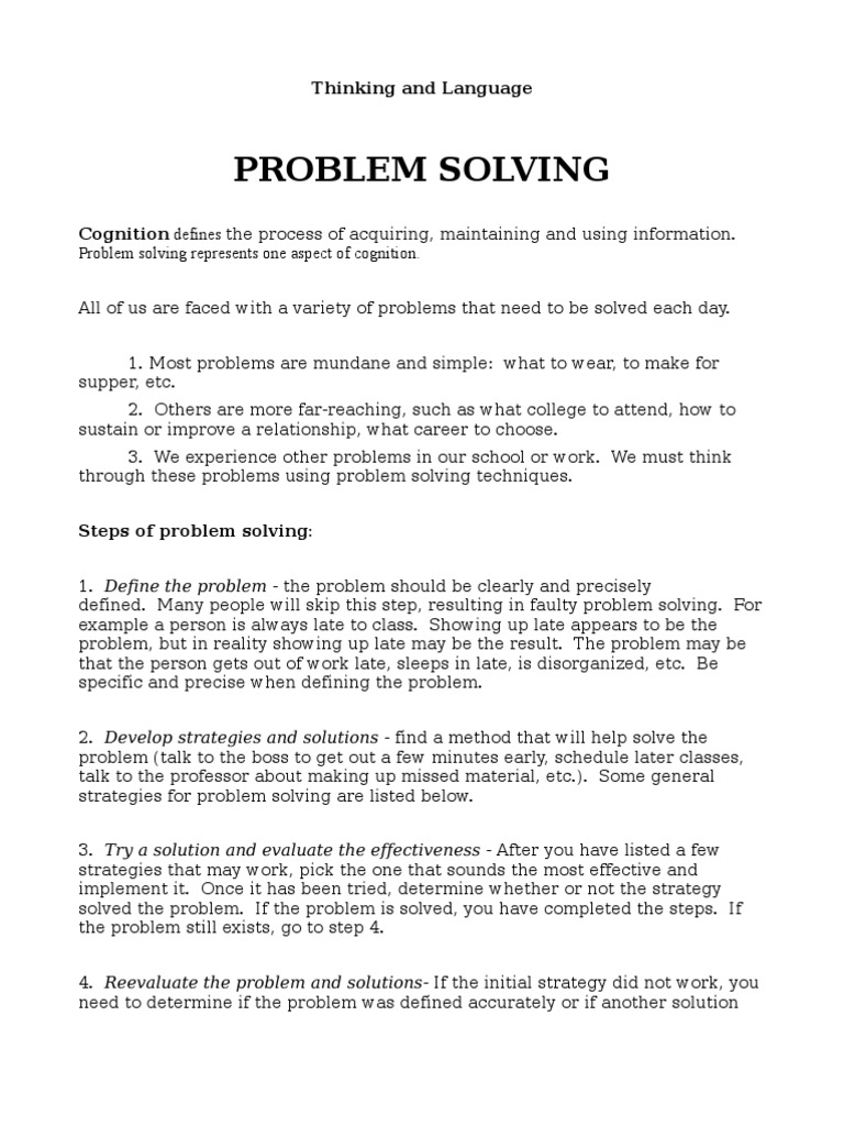 strategies for problem solving are listed below.