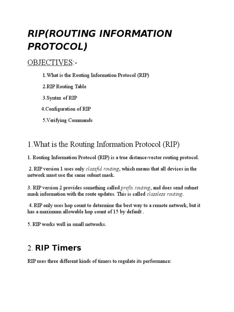 1. Routing Information Protocol (RIP) is a true distance-vector routing protocol.