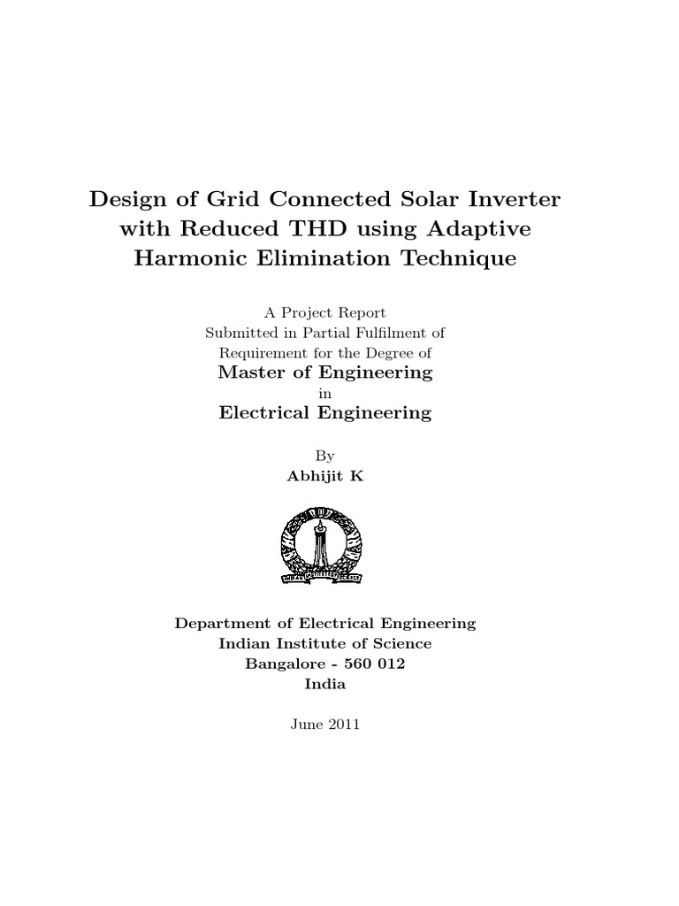 [14] Dipankar De, High Frequency Link Inverters and Multiresonant Controllers , PhD