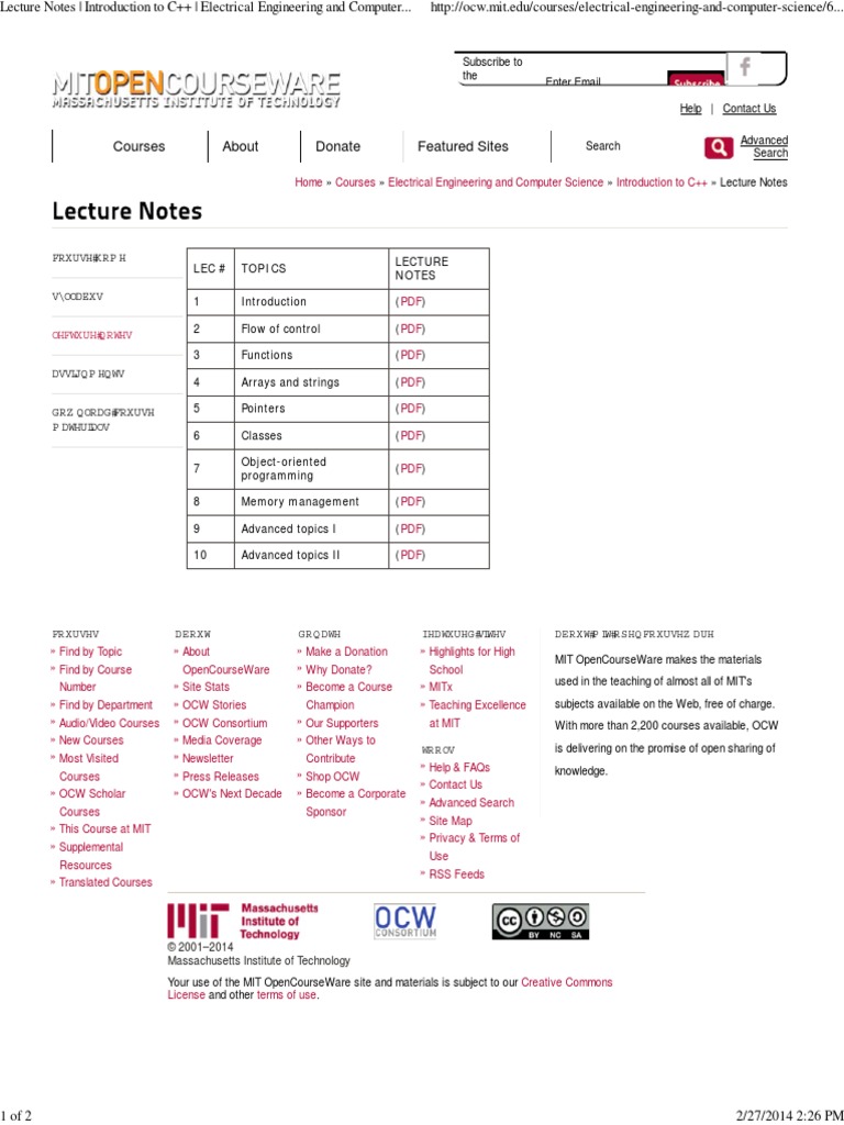 Lecture Notes | Introduction to C++ | Electrical Engineering and Computer... http://ocw.mit.edu/courses/electrical-engineering-and-computer-science/6...