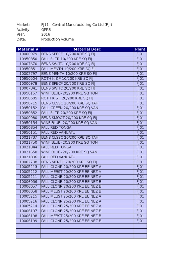 Material # Material Desc Plant