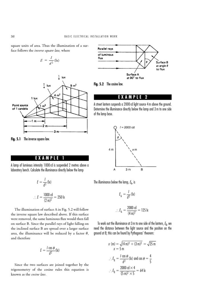 area, the illuminance will be reduced by a factor , ground at B; this can be found by Pythagoras theorem:
