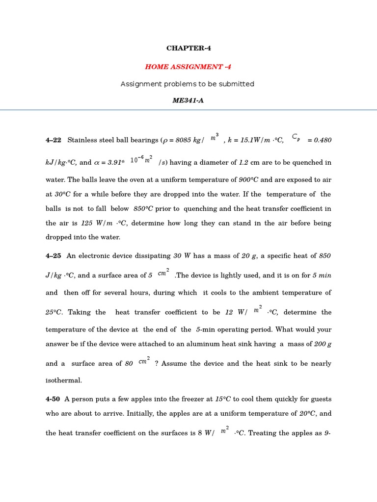 422 Stainless steel ball bearings ( = 8085 kg/ m , k = 15.1W/m C, = 0.480