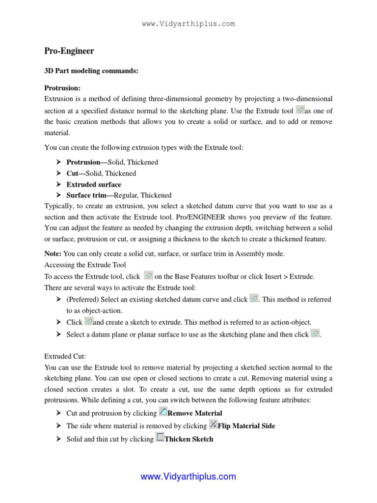 or surface, protrusion or cut, or assigning a thickness to the sketch to create a thickened feature.