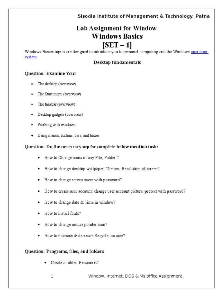 1 Window, Internet, DOS & Ms office Assignment.