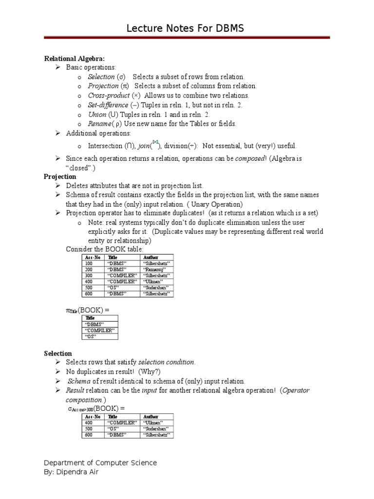 Since each operation returns a relation, operations can be composed! (Algebra is