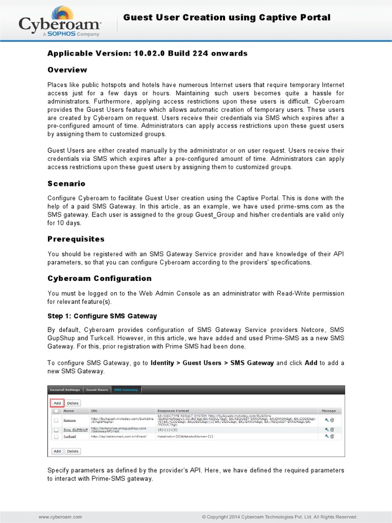 SMS gateway. Each user is assigned to the group Guest_Group and his/her credentials are valid only