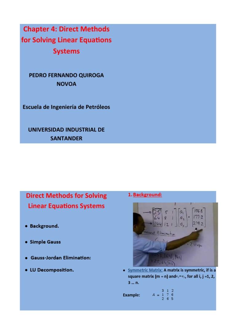 [ L ][ U ] =[ A ] [ L ][ D ] =[ B ] Making the forward elimination, we obtain the following