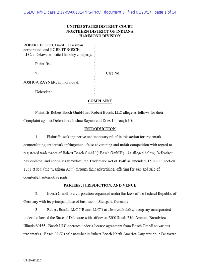 registered trademarks of Robert Bosch GmbH (Bosch GmbH). As alleged below, Defendant