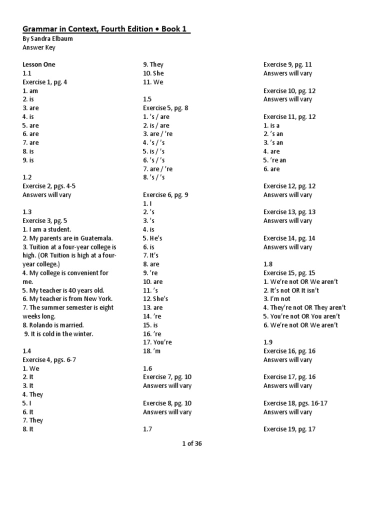 Part 1, pg. 34 8. he isnt (OR hes not) 25. are the students from