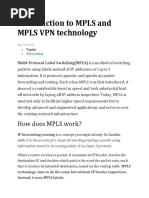 1 E. Rosen, A. Viswanathan, R. Callon, Multiprotocol Label Switching Architecture, RFC