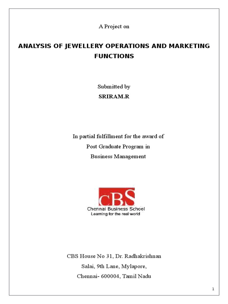 ANALYSIS OF JEWELLERY OPERATIONS AND MARKETING