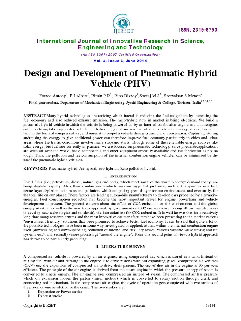 hybrid can be made which again reduces the pollution. Thus for green technology air hybrid is a boon. Many