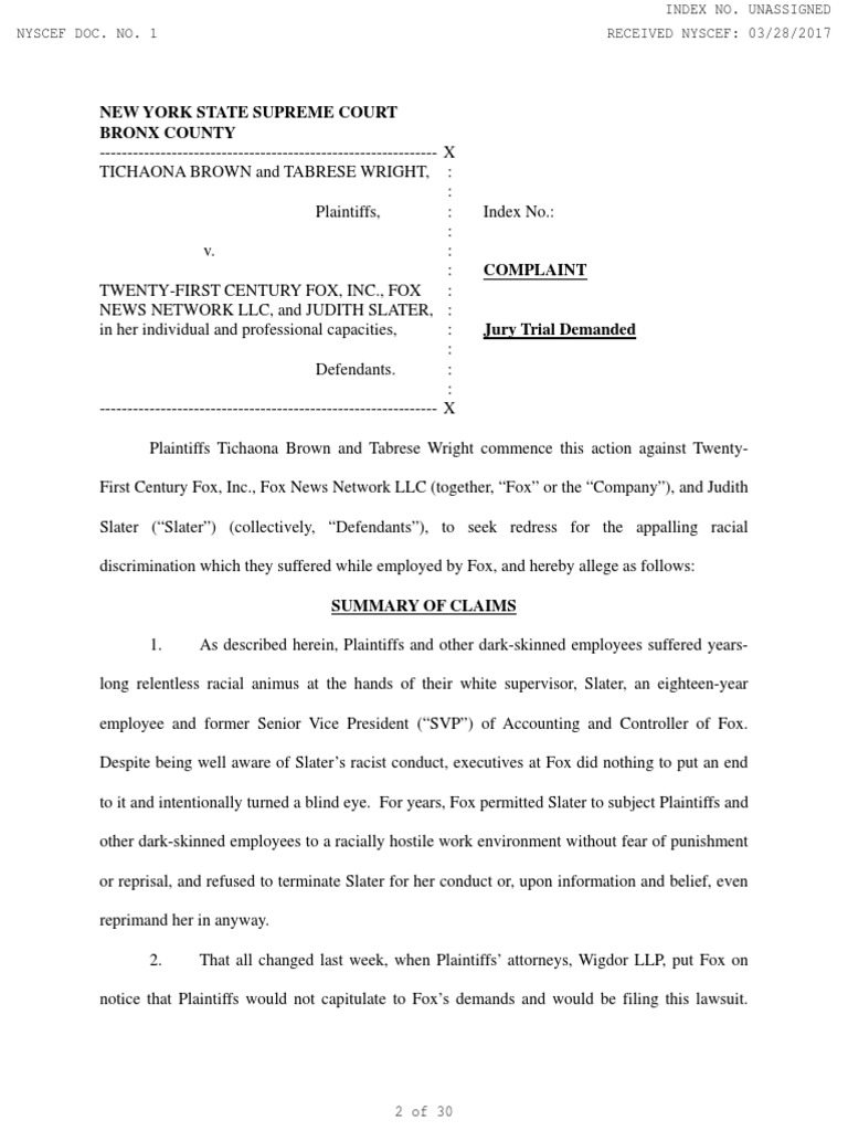 2. That all changed last week, when Plaintiffs attorneys, Wigdor LLP, put Fox on