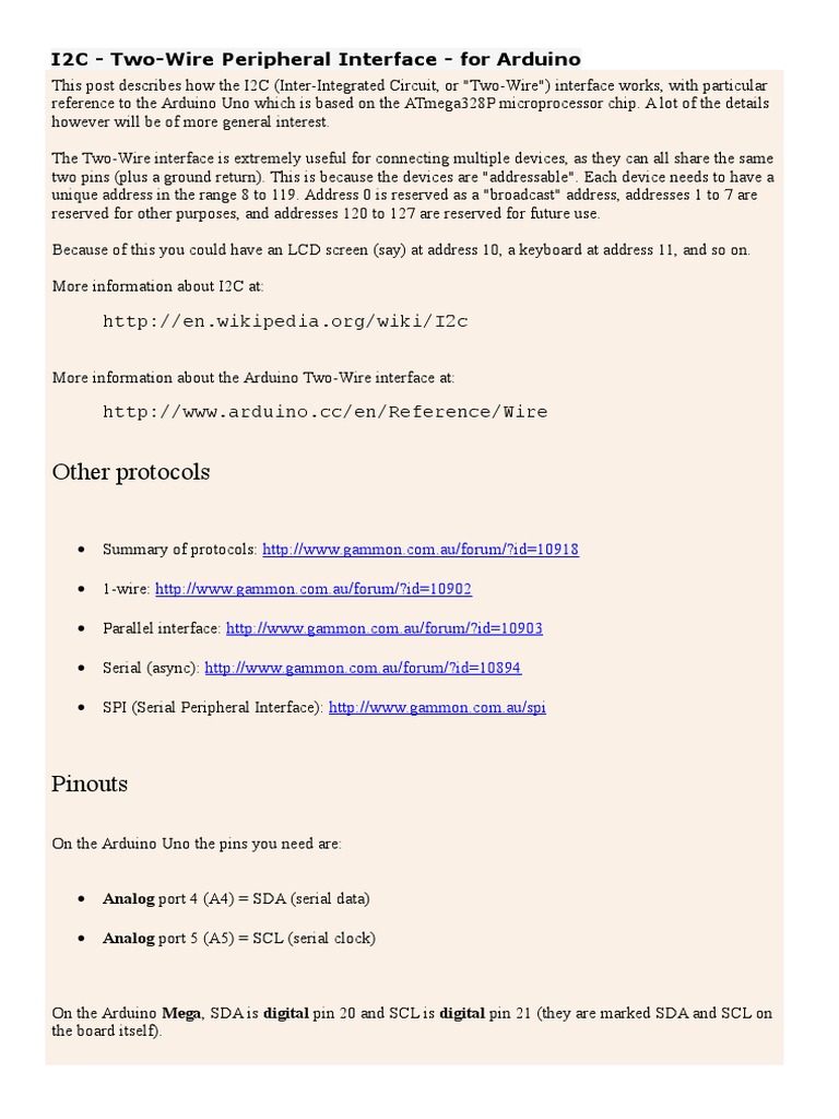 I2C - Two-Wire Peripheral Interface - For Arduino