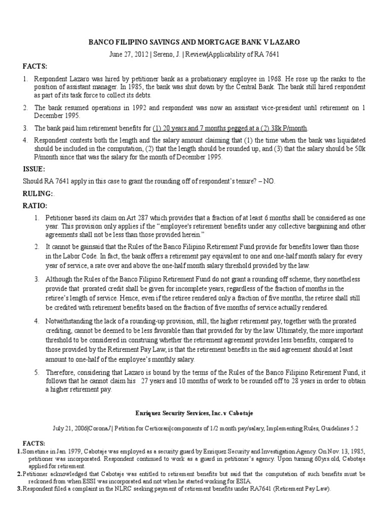 1. RA 7641 is undoubtedly a social legislation. The law has been enacted as a laborprotection measure and as a curative statute that