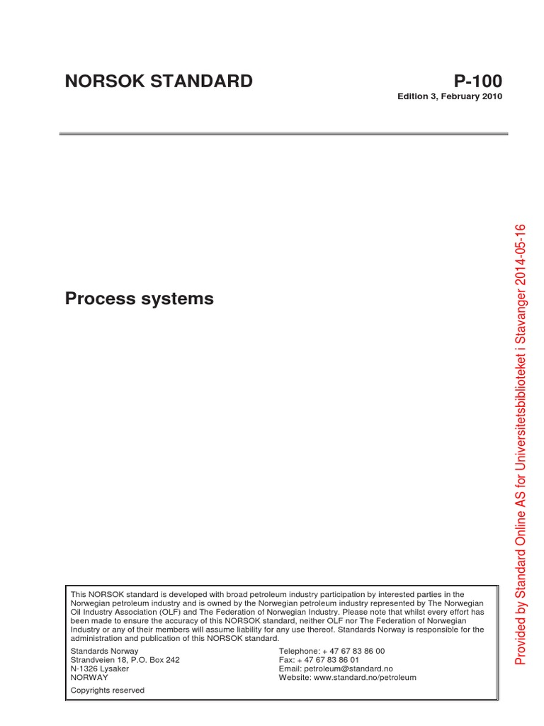 NORSOK standard P-100 Edition 3, February 2010
