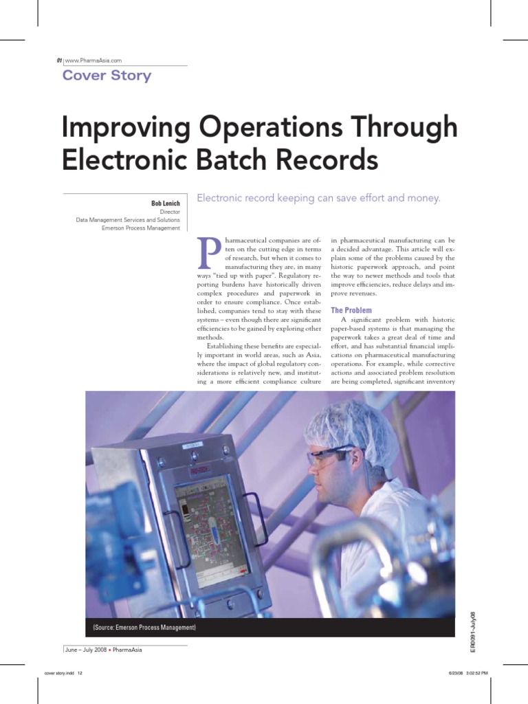 for the typical pharmaceutical company, hours. Switching to EBR can deliver signif- ture of information flow among the plant