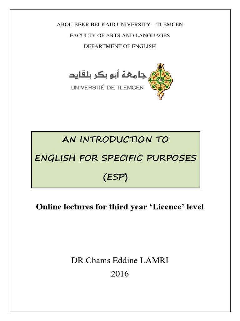 Benyelles, R. (2009) Teaching ESP at Post Graduate Level: Unpublished Doctorate Thesis: