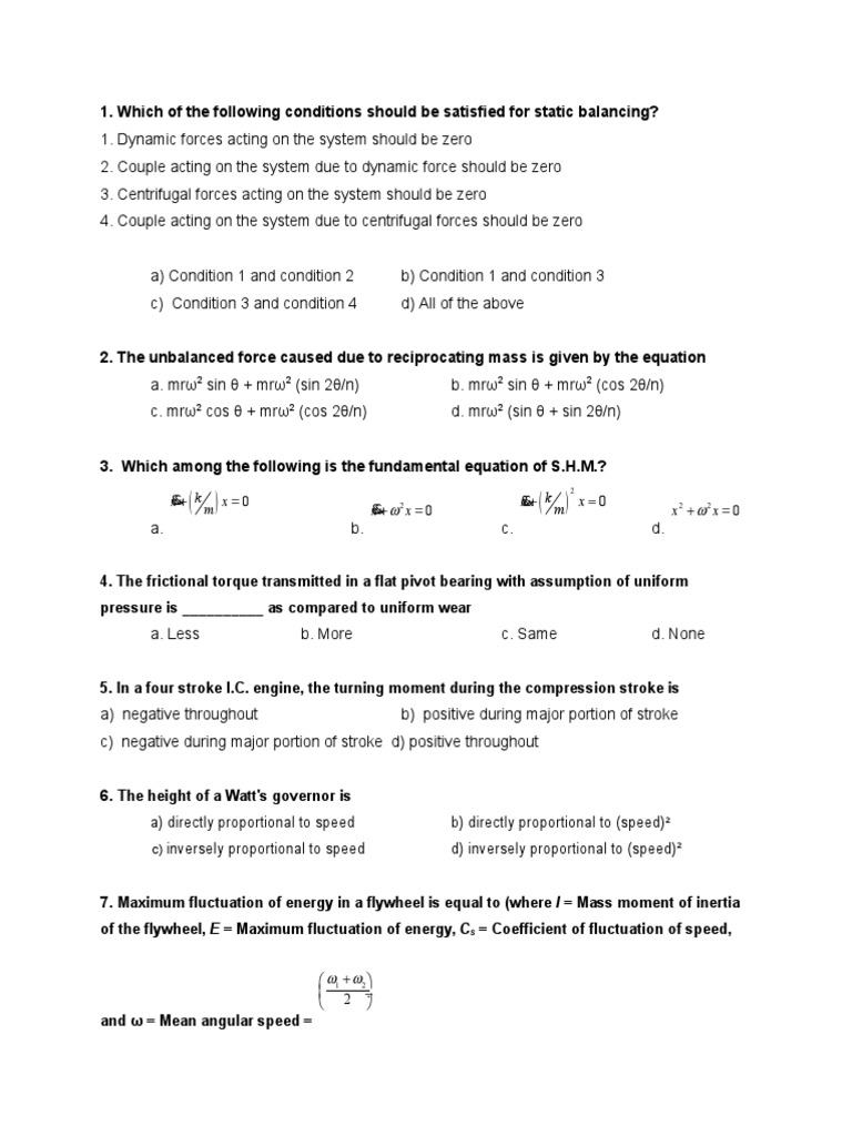 2. The unbalanced force caused due to reciprocating mass is given by the equation