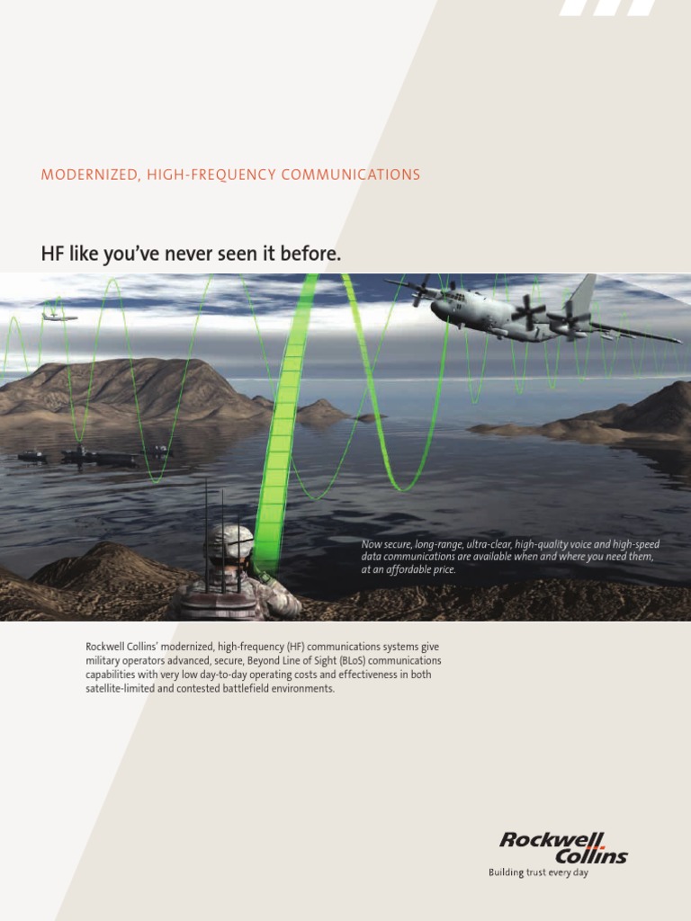 Our modernized HF eliminates the performance and signal clarity Rockwell Collins has taken HF a step further, introducing WBHF Our new approach to HF differs greatly from legacy systems Without the increasing subscriber and per-minute rates