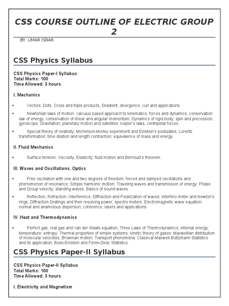 CSS COURSE OUTLINE OF ELECTRIC GROUP