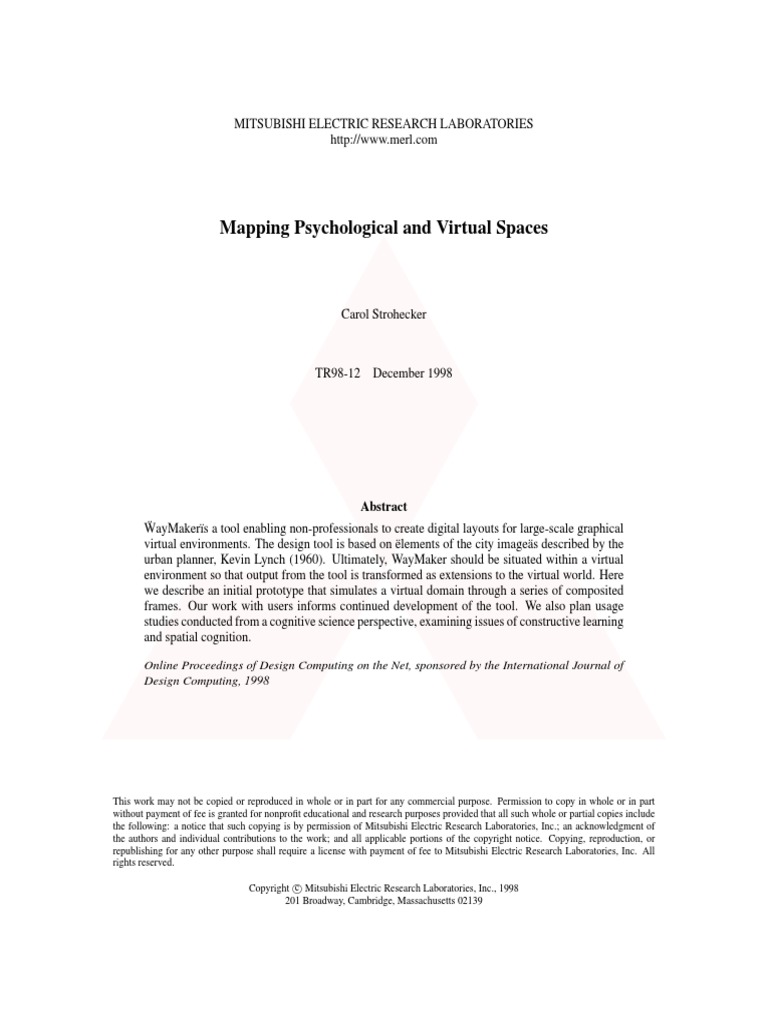 urban planner, Kevin Lynch (1960). Ultimately, WayMaker should be situated within a virtual