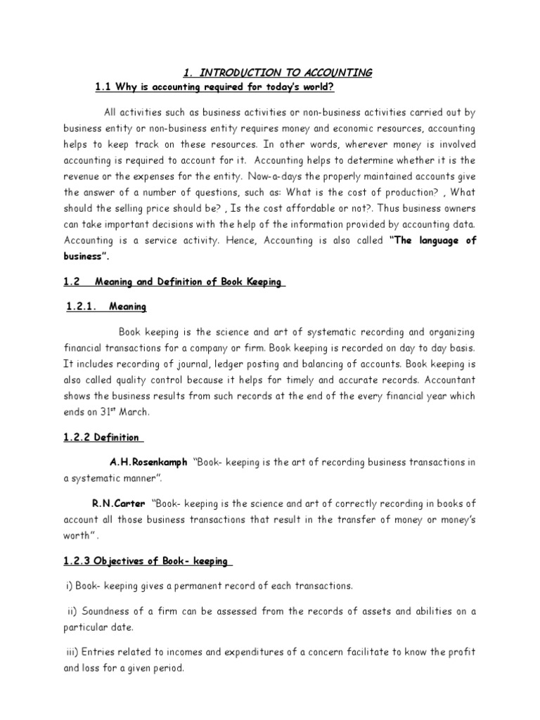 R.N.Carter Book- keeping is the science and art of correctly recording in books of